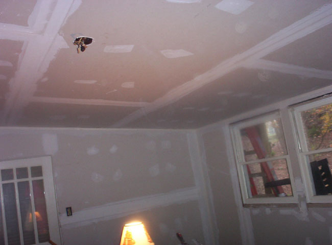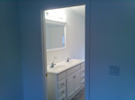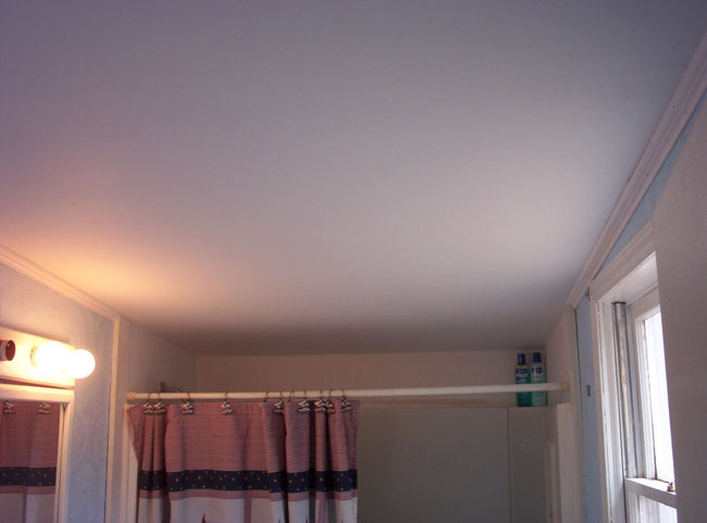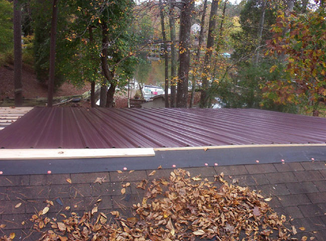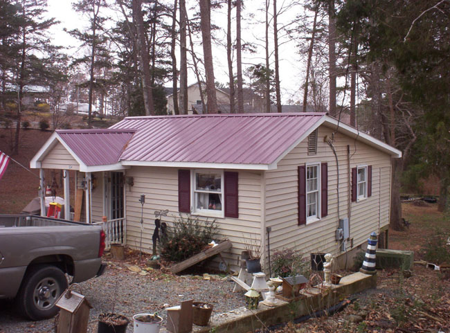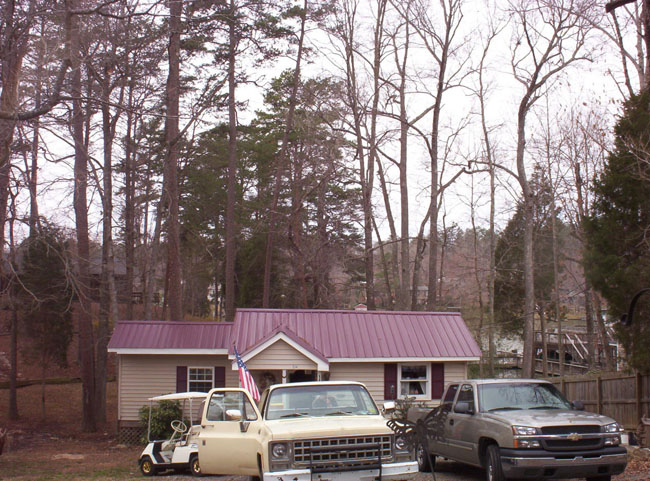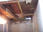 Example 1 Custom build new roof frame with adequate slope, new metal roofing, restore living room, bathroom and laundry room, after water damage
